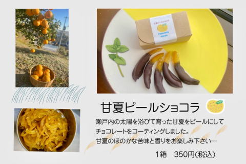 サブレオレンジをホワイトチョコでコーティング。 優しい甘さにオレンジの酸味がピッタリです。