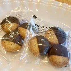 アーモンド風味のサブレに少しビターなスイートチョコをコーティングしました。