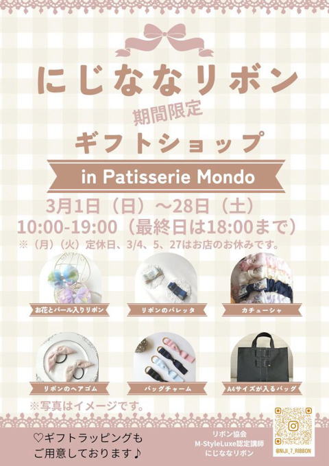 3月 にじななリボン【リボン小物】 (展示・販売)