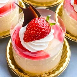 3種類のクリームチーズをブレンドしたなめらかなレアチーズにイチゴとユズのコンフィチュールを加えて風味豊かに仕上げました。